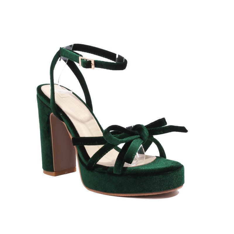 - Product Code: French-style Open-toe Block-heel Sandals With A Bow-cutout Strap